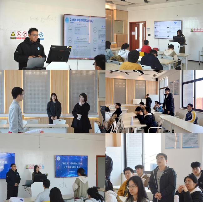 聘任仪式后,张鹏崧、张晗围绕“如何用好当代人工智能”开展专题分享。张鹏崧结合研究生阶段联邦学习、长尾学习、隐私保护研究方向,系统梳理了大模型的核心术语与底层逻辑,并聚焦提示词优化技巧,结合科研论文撰写等场景,演示如何高效利用大模型工具辅助学术研究。张晗以国产大模型DeepSeek为切入点,从技术架构、应用场景到安全策略进行多维解析,结合代码生成、数据分析等实操功能,强调“人机协同”在提升日常学习、学术研究中的关键作用,为同学们探索AI工具提供了清晰的路径。活动现场氛围热烈。