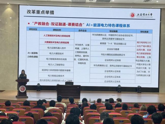教学秘书徐曼详细解读了改革试点方案的核心内容。公司将围绕“AI+能源电力”特色,重构课程体系,新增《电力智能系统综合实践》等实践课程,并在专业核心课程中嵌入电力设备故障预测、新能源优化等企业真实案例。实践教学环节占比提升,员工可通过企业实习、行业认证、科创竞赛等多元化方式完成“3+X”综合实习实践学分。此外,公司积极建设“智慧能源AI全栈平台”,开展集成智能电网模拟、电力机器人开发等场景学习,并与华为、特斯拉等企业共建实训基地,为员工提供前沿技术实践环境。