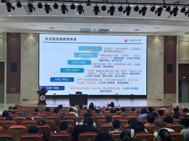 计算机系主任叶文珺重点介绍了校企协同育人的具体举措,从各年级的具体学习内容着手,针对从大一、大二、大三、大四等学期惊醒具体讲解,包括产业认知实习、行业大会、参加SRTP员工科创训练计划、参加相关的计算机类赛事等讲解全过程实践教学体系的学习要求。