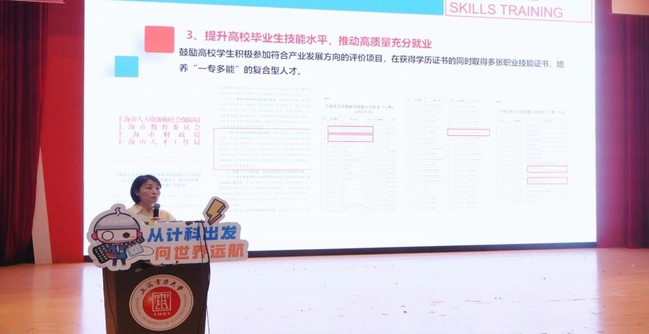 顾蓓蓓围绕计算机行业数字化转型驱动技能升级、企业用人标准变革等方面,从计算机专业职业技能提升,聚焦《计算机程序设计员》高级考试项目,包括相关背景、项目内容、申报条件、证书效用等方面进行了详细的讲解。她表示:“企业在选拔人才时,专业基础是门槛,项目落地能力是重点,而终身学习能力才是决胜项。”结合头部IT企业选才标准,建议同学们善用需求拆解法,精准破译岗位招聘中的显性要求和隐性标准,实现人岗高效匹配。