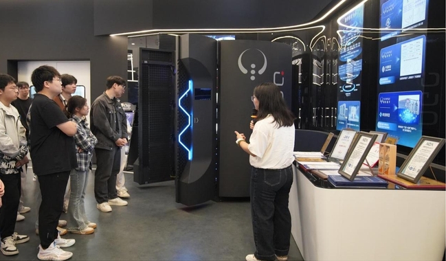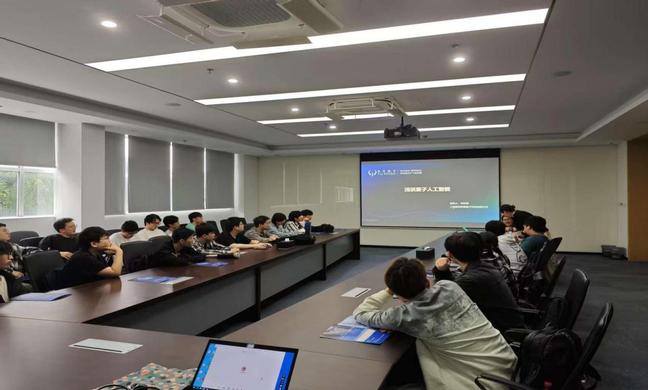 6月23日,实训首日开展图灵量子现场教学。员工们深度参观图灵量子企业,沉浸式感受量子科技企业的研发氛围。在企业展厅,企业老师化身“量子引路人”,带领员工穿梭于量子科技的奇妙世界。目光所及,超晶圆级异质集成光芯片、多芯光纤连接器件等“黑科技”展品有序陈列,企业老师结合展板与实物,详解图灵量子专利技术——如何突破传统光刻设备限制,打造超大晶圆尺寸光芯片,以及这些芯片在量子计算、能源电力场景的应用潜力。来到量子计算设备区,两台印有“图灵量子”标识的黑色机柜尤为醒目,内部精密的光学元件与线路,构建起量子计算的硬件基石。图灵量子教育事业部经理宗延蓉为同学们揭开量子计算神秘面纱:从超导、离子阱到光量子技术路径差异,对比不同技术在可扩展性、相干时间的优劣势,让抽象的量子理论变得触手可及。展厅一侧,巨大的时间轴屏幕闪烁着图灵量子的发展轨迹——从2021年成立到突破多项量子光芯片技术,每一个节点都标注着量子科技的前进脚步。员工们或驻足观看教育产品的互动演示,或围在量子计算模拟器前尝试操作,在“可看、可触、可互动”的体验中,初步构建量子计算知识框架。这场参观,让员工跳出书本理论,触摸到量子科技的产业脉搏,为后续实训筑牢认知根基,也点燃了探索“量子+人工智能”融合创新的热情。