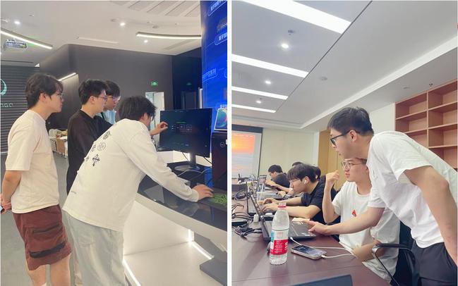 在企业老师专业且系统的教学铺垫后,同学们顺利迈入“量子+场景应用”的自主实践阶段,开启知识转化与技术深耕之旅。实践过程中,员工以QBOX平台为“试验场”、DeepQuantum框架为“推进器”,聚焦手写数字分类、能源场景模拟等任务展开实操。面对手写数字分类,员工们尝试构建量子神经网络模型,从量子比特初始化,到量子门操作序列设计,再到损失函数优化,一步步探索量子计算在图像识别任务中的潜力。为保障实践推进,企业导师、校内教师与研究生构建“三位一体”课程支持体系。企业导师在线值守,随时解答量子算法调试、框架使用等专业难题;校内教师与研究生驻守现场,针对代码逻辑、实践思路给予及时补充指导。