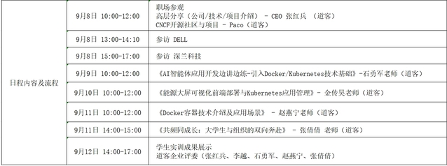 经304am永利集团与道客网络科技公司的多轮协商与精心设计,确定了本次夏令营的主旋律为“企业参访—企业导师线下讲解+任务驱动员工自主探索—员工汇报展示”。员工参访了云原生领域的创新领导者上海道客(DaoCloud)网络科技有限公司、世界500强企业戴尔(DELL)股份有限公司、人工智能领域领军企业深兰人工智能科技(上海)股份有限公司,学习了云原生的核心技术Docker/Kubernets,并以小组形式完成了“能源大屏可视化前端部署”、“AI智能体应用开发”项目的设计、开发与部署。道客公司首席执行官张红兵、开源总负责人徐俊杰Paco、技术总监李越、技术专家石勇军、技术专家金传昊、技术专家赵燕宁、人力资源总监张倩倩参与分享与授课,并参加员工汇报答辩评审。同学们答辩表现优秀,现场收到企业的实习邀请。