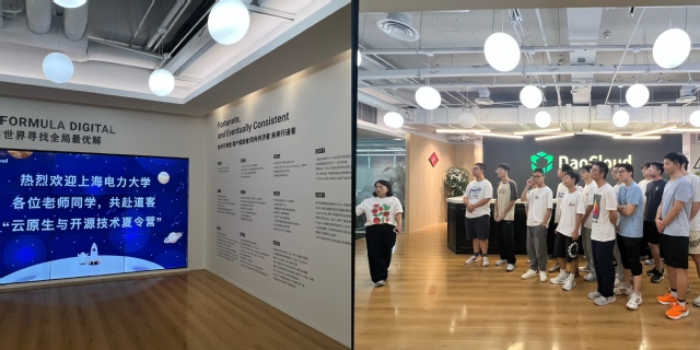 9月8日上午第一站参观DaoCloud(道客)公司。在道客公司,同学们参观了现代化的企业展厅与技术工作环境,听取了公司技术专家关于云原生技术发展趋势及企业级落地案例的精彩分享,并就开源社区贡献、技术选型、职业发展等话题与一线工程师进行了深入热烈的座谈交流。此次企业行不仅让抽象的技术概念变得触手可及,更极大地拓宽了同学们的行业视野,激发了他们的技术创新热情。