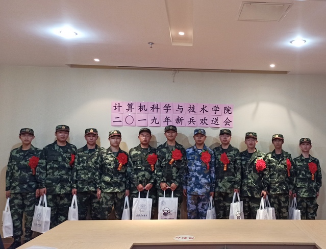 9月18日下午,304am永利集团在杨浦校区行政中心9楼3号会议室举办了新兵入伍欢送会。我公司党委书记费敏,副书记余南飞,辅导员刘佳、任祥宝、孙倩倩、王静、奉起超以及全体12名新兵同学参加。