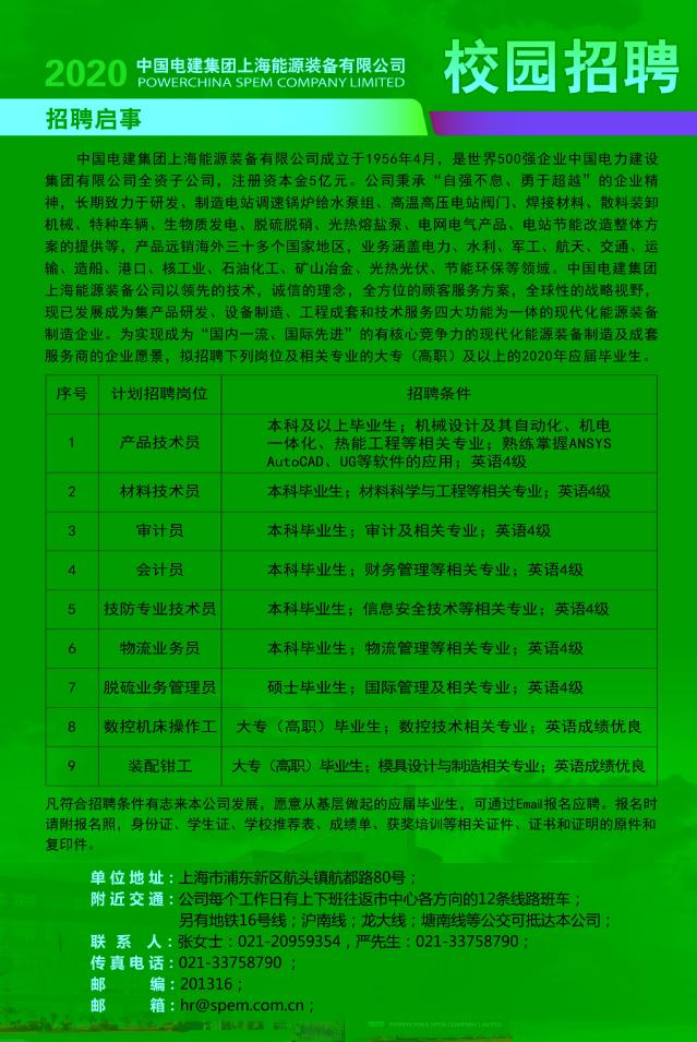 【招聘信息】172-202003中国电建集团上海能源装备有限公司