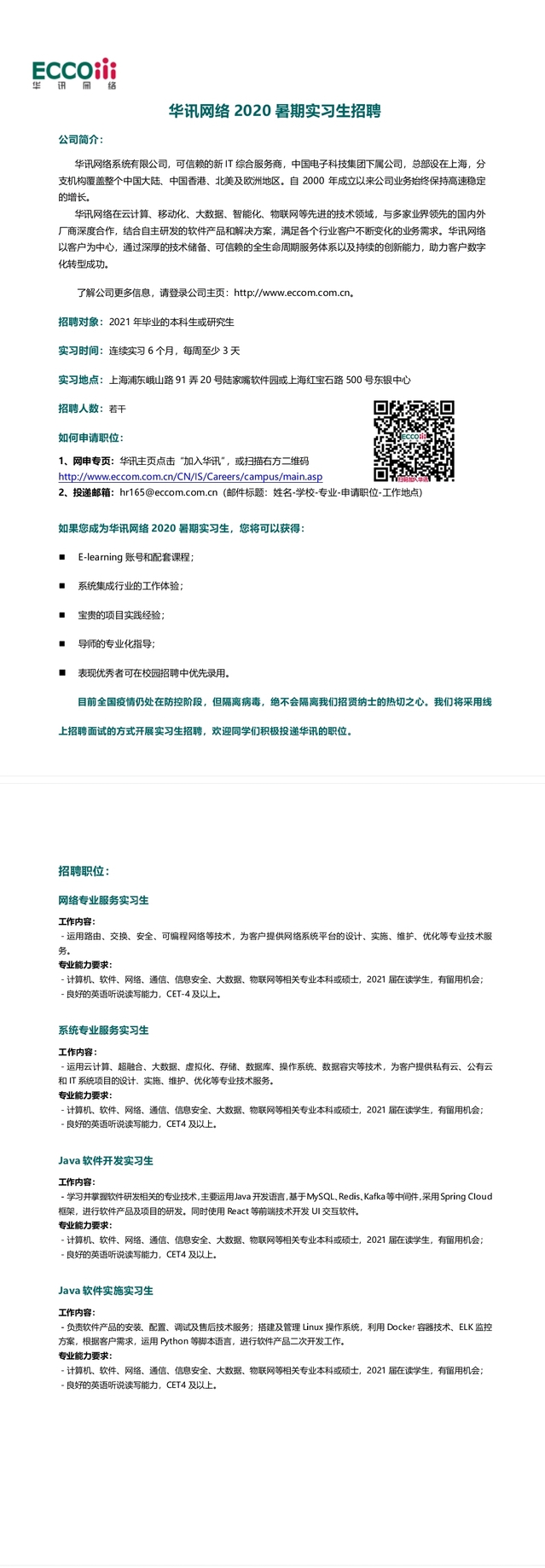 【招聘信息】199-202008华讯网络2020暑期实习生招聘