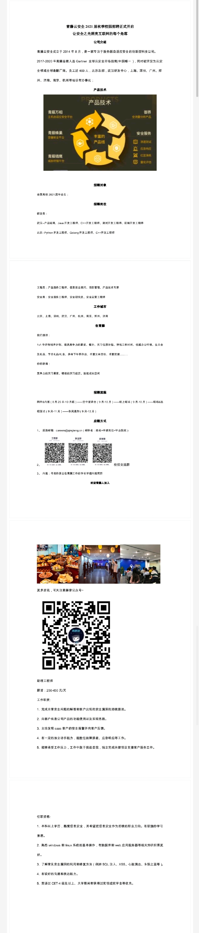 【招聘信息】209-202010青藤云安全2021届秋季校园招聘