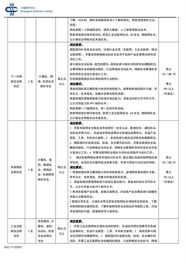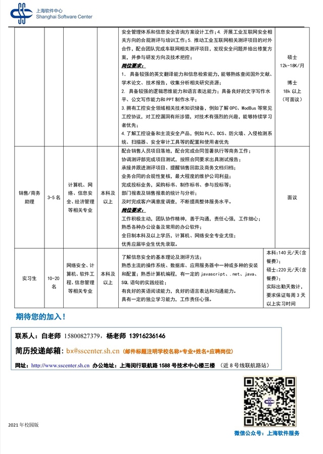 【招聘信息】253-202111上海软件中心招聘