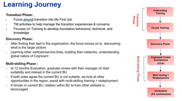 我司有完善的技术/非技术类培训体系,入职后一部分由公司培训部门严格按照培训大纲完成,一部分由项目组内资深员工根据项目技术要点进行培训。培训部门会提供前沿技术培训课程(例如 全栈工程师/云计算/商业智能/物联网相关技术等),商业领域培训(跨10大行业,各行业核心商业模式,业务架构等),软技能培训(商务沟通、谈判技巧、项目管理、领导力等等),语言能力培训(英语、日语、韩语等等),课件由我司海外技术团队提供,线上课程多达数万北美课件,也包括一些全球认证工程师课程,可以选择参加考证,费用公司承担。每个岗位都有对应的高知特发展路径,也鼓励轮岗制(例如有机会在不同项目、岗位上的轮岗或亚太区其他国家(新加坡、日本、澳大利亚、马来西亚等)岗位轮岗)。