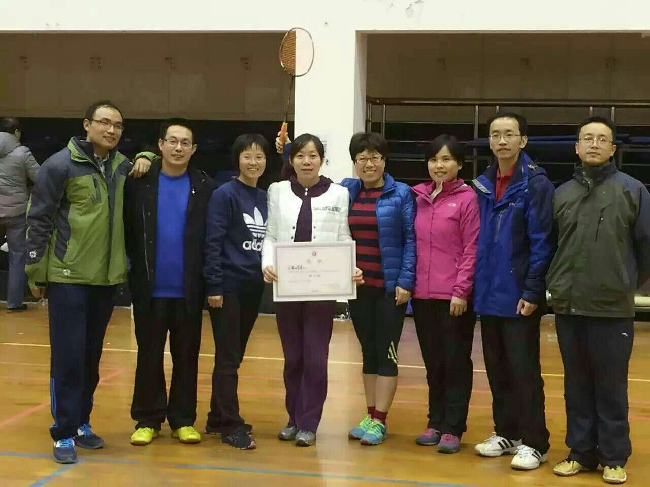 11月27日下午,上海电力公司2015年度教工羽毛球团体赛在平凉校区体育馆举行。公司教工羽毛球队由公司党委书记费敏老师任领队,副经理毕忠勤老师、分党委副书记王佳丽老师、刘大明老师、田秀霞老师、薛梅老师、成贵学老师、赵铮老师组队参赛,经理雷景生老师、分工会主席院办公室诸葛老师、唐小岚老师到场做好后勤保障。