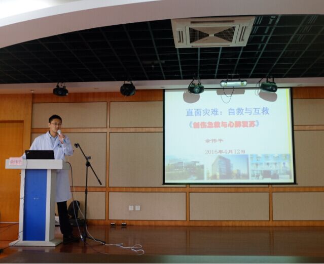 为提高老员工生命意识和互助精神,增强老员工应对突发紧急救护能力,4月12日下午,“直面灾难:自救与互救”讲座在浦东校区文化活动中心3楼多功能厅正式举行。浦东医院团委书记郑文龙、公司党委副书记王佳丽参加活动。