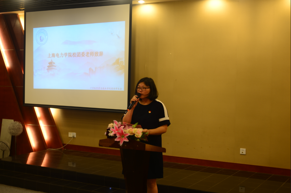 校团委副书记徐仙君老师为大会进行致辞。她代表校团委对公司团学工作的开展与实施表示了肯定与赞扬,并希望新一届团学干部能接过前一届干部手中的责任,再接再厉。