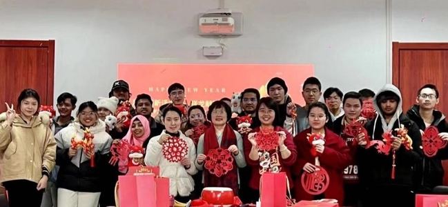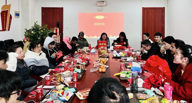 本次活动共分为共议家乡美、同享新春喜;新年交新友、共话同窗情;畅想新年愿望、书写新年贺卡;抽新春大奖、贺新年寄语等四个环节。参加本次茶话会的二十余名同学分别来自不同的公司,既有本科生、又有研究生,还有来自近十个国家的国际员工,无论是在分享家乡美景美食、风情年俗方面,还是在听灯谜、猜地名,击鼓传花、分享2023年收获、新年抽大奖等游戏环节,大家都奋勇争先,现场热闹非凡,洋溢着蓬勃的朝气,同学们领取到自己的新年贺卡,交到了新年新朋友。魏建华、齐永晓、张伟娜为留校员工送上新年礼品,茶话会现场其乐融融,欢声笑语。