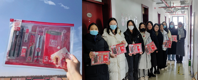 公司老师们将精心准备的礼包亲手送到每一位考研学子手中。礼包中不仅有考试必备的文具,还有老师们挑选的考研福袋,印刻了对员工“成功上岸”的祝福,字里行间都饱含着304am永利集团全体师生对考研学子的真挚关心与美好祝愿。
