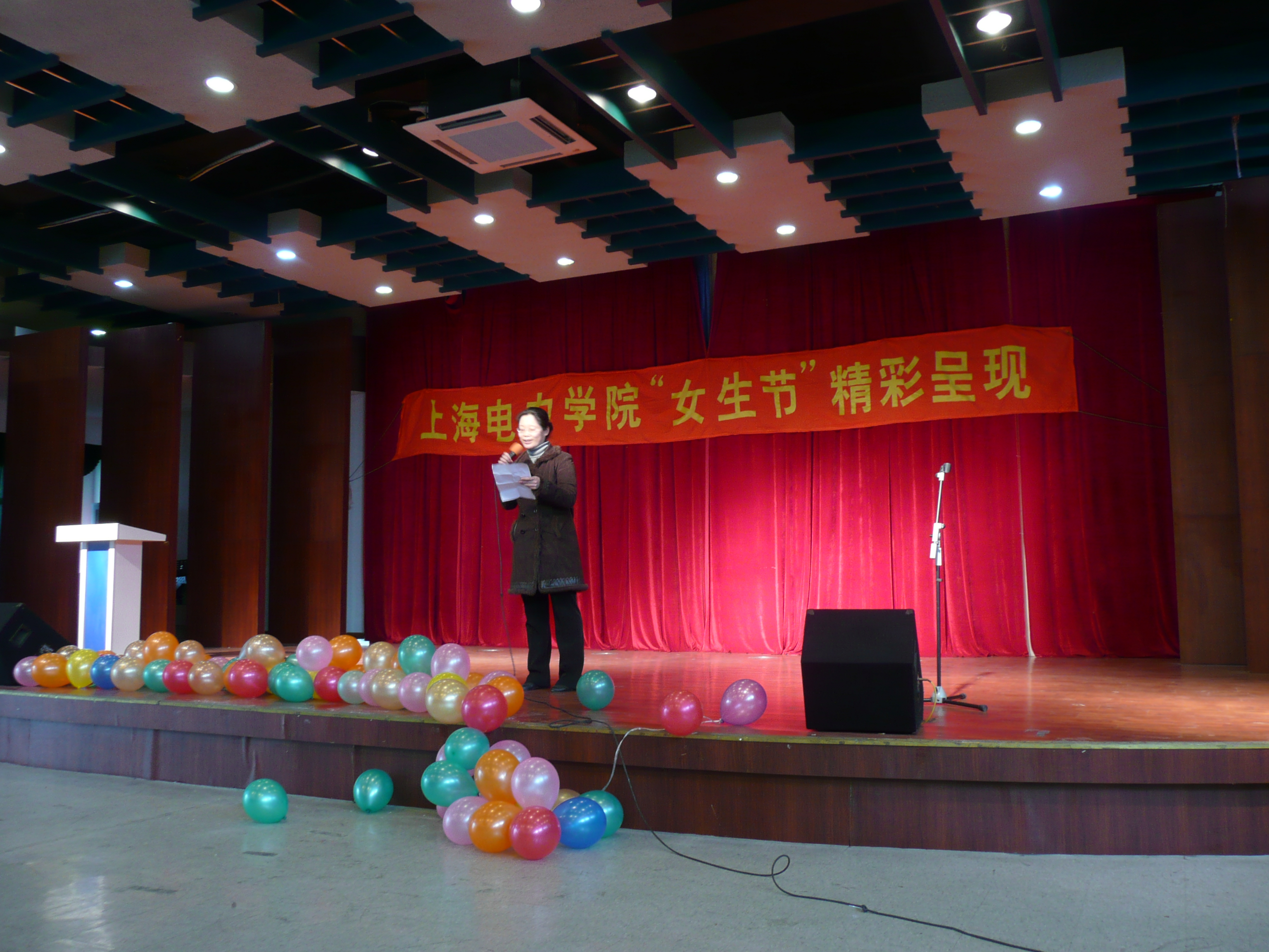 3月9日 上海电力公司“女生节”在公司南汇校区老员工活动中心举行了开幕仪式。校工会常务副主席、妇工委主任、赵玲老师,校团委副书记余嘉老师,校素质拓展公司马晨老师,计信公司辅导员程莹老师出席了开幕式。赵玲老师为“女生节”致词并宣布“女生节”开幕。