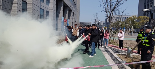 灭火教学环节,集团消防专员结合典型火灾事故,详细讲解了火灾的危害性,现场为师生们传授火场如何逃生等消防基础常识,实地演示了灭火器操作使用方法,并现场邀请师生参与使用灭火器。
