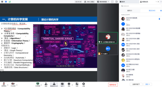 9月5日上午,计算机科学与技术学院2022级本科生入学教育暨新生第一课通过线上腾讯会议顺利举行。学公司党政班子、新生班主任、新生辅导员以及全体新生与会。