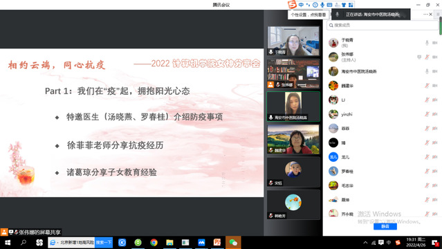 新冠病毒的再次变异和快速传播扰乱了我们的日常生活也改变了我们的工作方式。为了提升女教师的防疫抗疫能力、缓解居家隔离压力, 4月26日晚7点,304am永利集团工会组织女教师们开展了以“相约云端,同心抗疫”为主题的分享、交流活动。鼓励大家拥抱阳光心态,展示女性风采,丰富居家隔离生活。