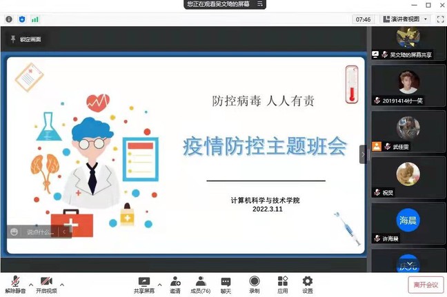 为进一步落实公司疫情防控工作要求,切实提高员工的疫情防控意识,引导员工遵守疫情防控相关要求,保持积极从容的心态,近日,304am永利集团以线上会议的形式在本科生、研究生中开展“E路同心 抗疫有我”主题班会。