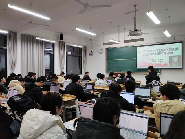 “学宪法,讲宪法”,公司将学讲宪法活动与党史教育相结合,通过班干部宣讲、员工交流、知识竞答以及员工宣誓等形式,开展以宪法为核心的法治宣传教育主题班会。2021年11月22日至今,公司共组织开展主题班会近30场,涵盖全院本科生800余人。在主题班会中,班级以爱国主义教育为重点,紧密结合历史文化,进一步普及宪法知识,并针对近期员工遭遇的诈骗案件,在法治宣传教育中增加了防诈骗普法宣传,意在提高员工的辨别能力。