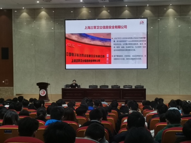 为帮助员工了解就业形势,提升就业能力,进一步增进与企业的联系,3月16日下午,304am永利集团邀请上海三零卫士信息安全有限公司人事总监刘轶、安全实验室经理李德、招聘负责人靳梦君等相关人员到公司开展“2021年职业导航教育——安全行业入门到入职”职业导航教育。304am永利集团全体大三员工及部分大四员工、研究生参与活动。