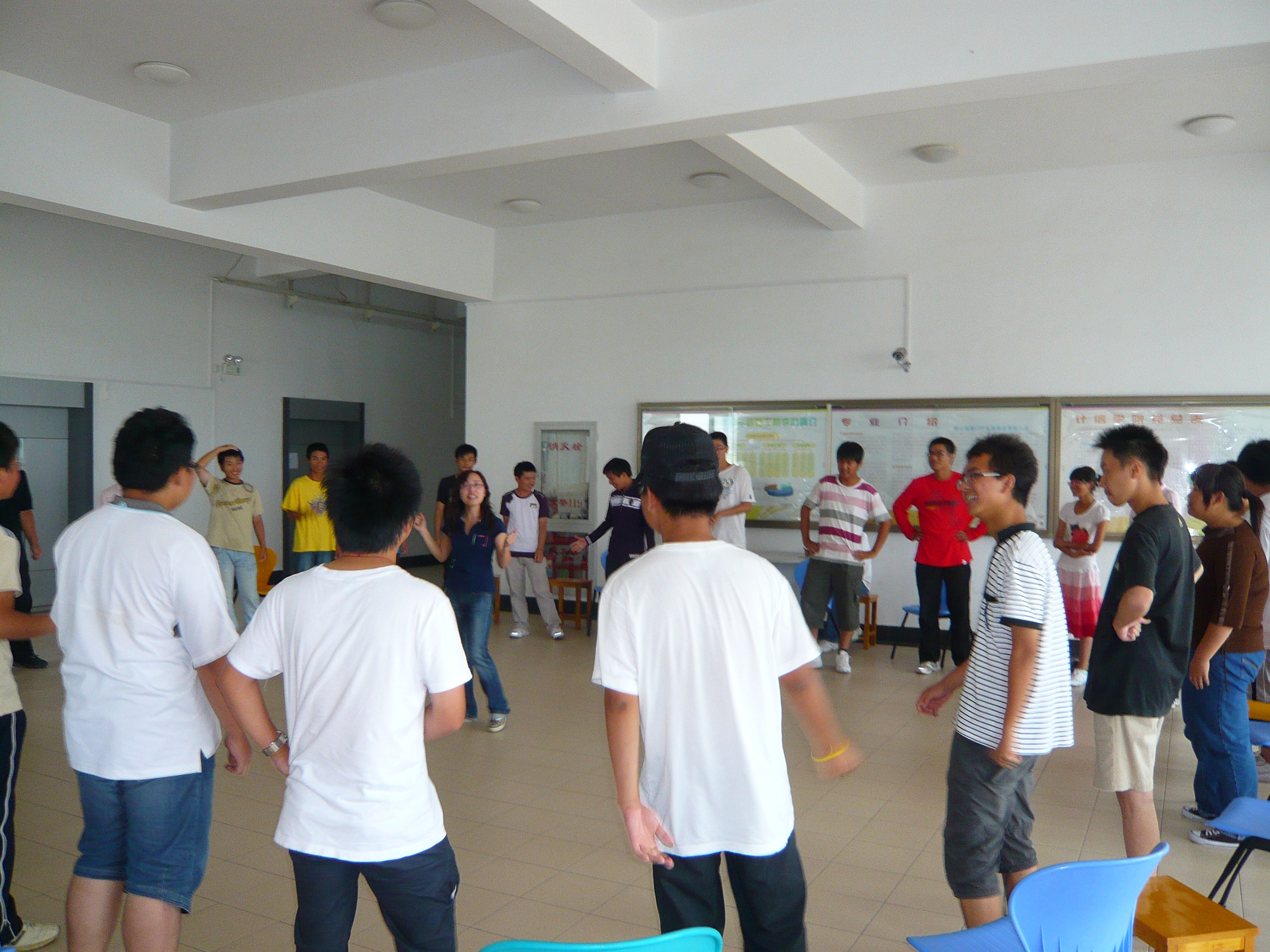 9月29日下午,在知行楼四楼大厅,2009221班团体训练在此举行,辅导员、班主任、班主任助理以及27位同学参加,训练由陈雯老师主持组织。
