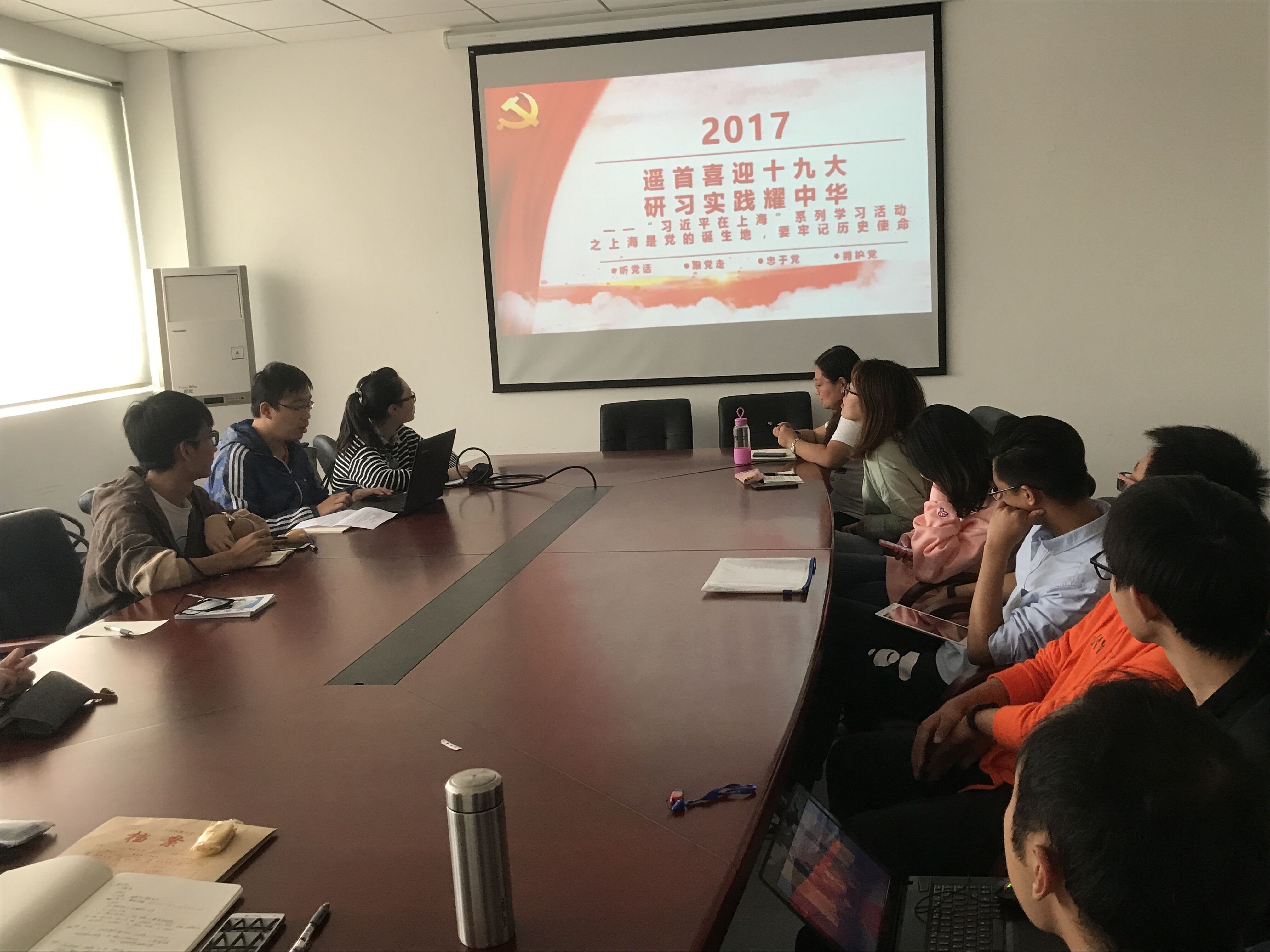 10月13号上午9点,以“遥首喜迎十九大,研习实践耀中华” 为主题的“习近平在上海”讲话系列展示、学习活动在行政楼会议室拉开帷幕。本次活动由院信息安全本科生党支部书记吴涵主持,参加本次学习活动的还有支部副书记贺文婷等16名党员。本次展示、学习活动积极响应公司党委号召,旨在通过学习、实践、展示使“习近平在上海”系列精神在每位党员的日常生活中得以践行。
