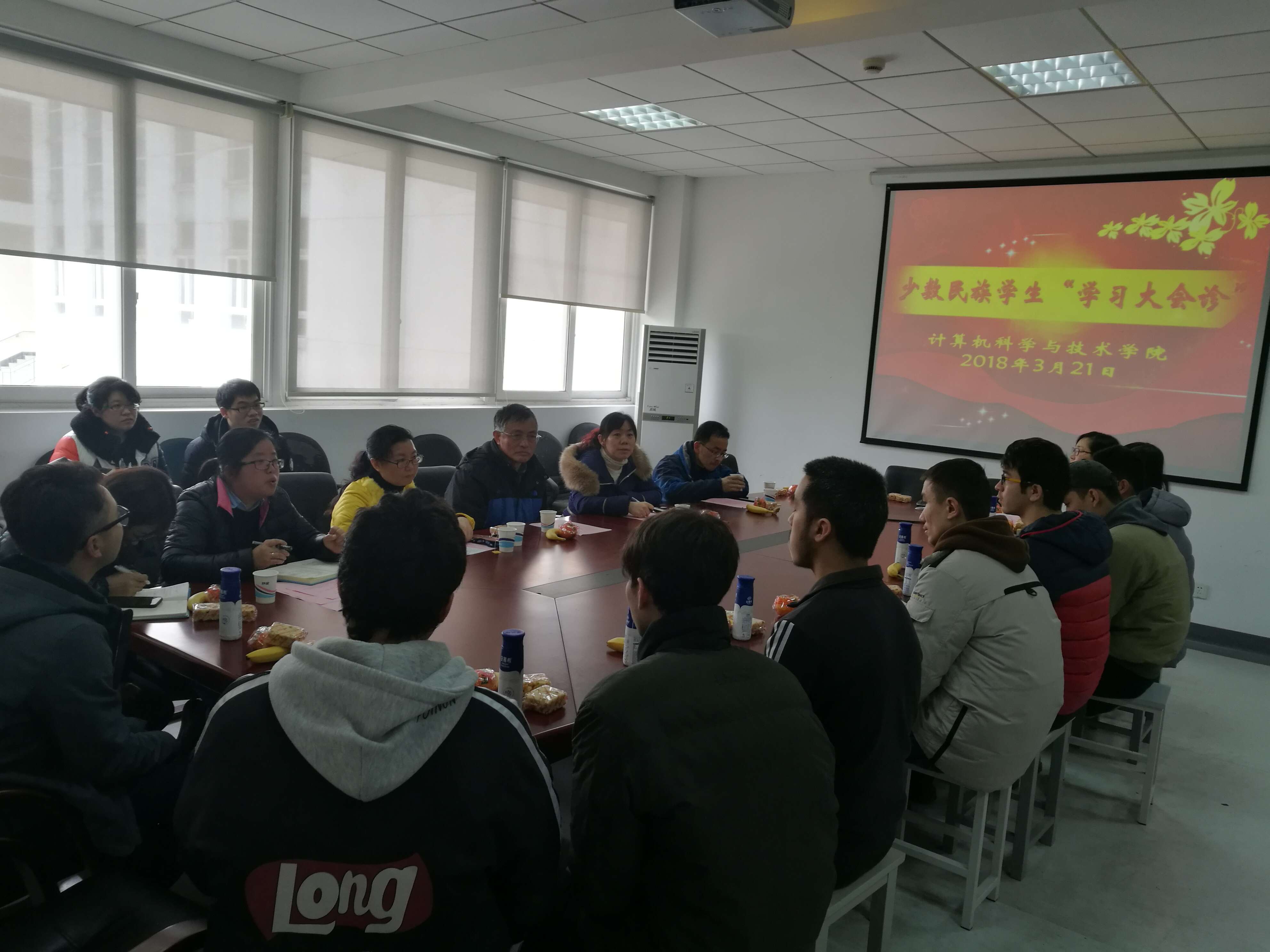 座谈会上,公司党委副书余南飞老师向在坐的少数民族员工介绍了此次座谈会的主要目的是为了提升大家的学业成绩,为此公司制订了少数民族员工教育管理办法并做了相关的安排部署;经理温蜜老师鼓励少数民族员工要珍惜机会,努力学习,增长知识,实现自我成长;公司副经理毕忠勤鼓励同学们要积极参加公司专门为他们所开展的“一对一”结对帮扶活动,当遇到困难时要及时与任课老师沟通;教工党支部书记魏为民老师分析了少数民族员工目前的学科成绩,在肯定他们学习能力的同时鼓励同学们一要树立信心,二要坚持做下去,三要识读教材,四要积极参加帮扶结对活动;公司关工委老同志王唐兴老师从关心、关爱下一代青年员工的角度,结合自身经历、从教经历,给少数民族员工提出许多有意义、切实可行的建议,并勉励同学们要珍惜美好时光,刻苦学习,不负时代使命,顽强奋斗,努力向上。
