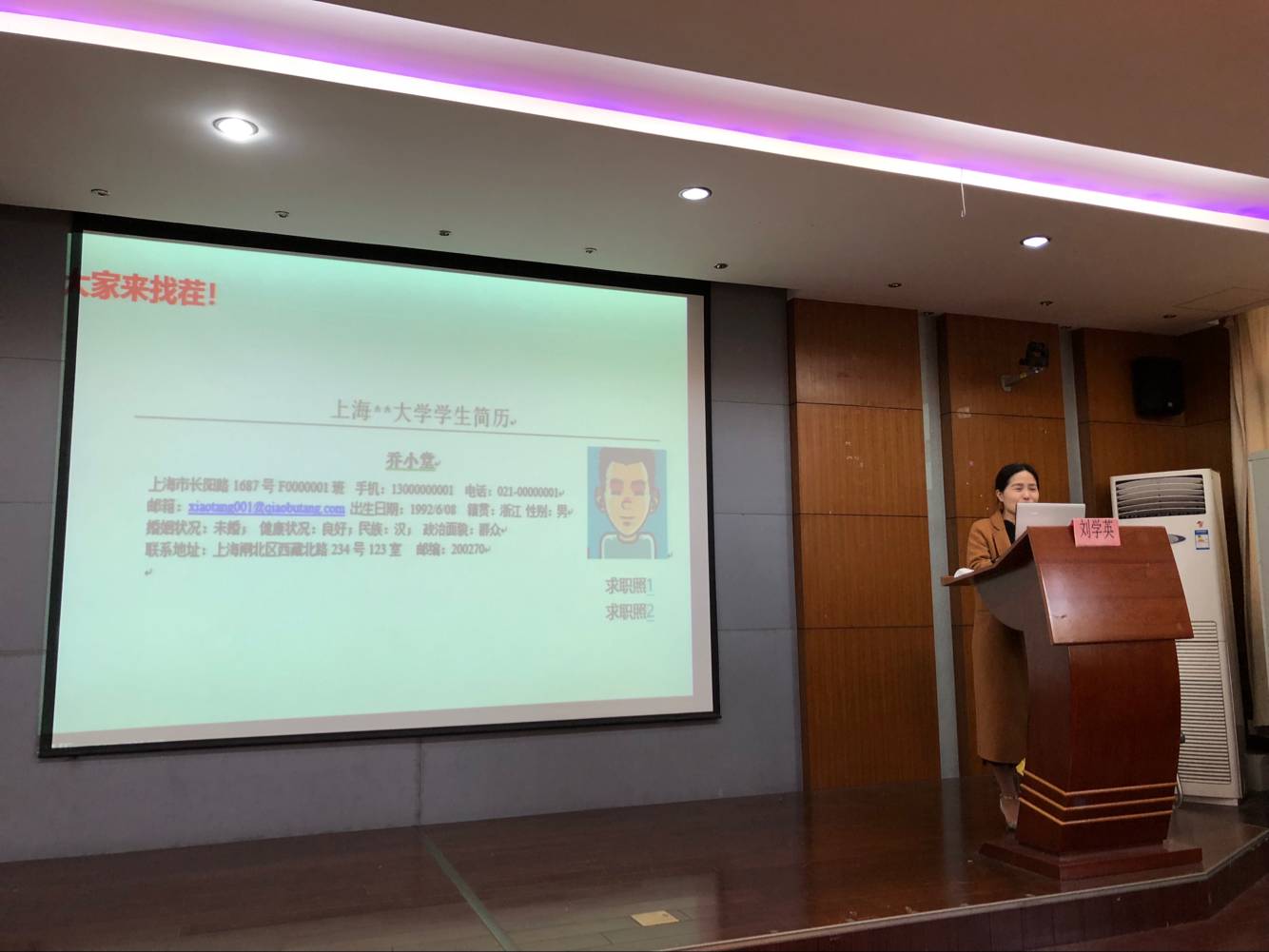 为进一步帮助同学们在职场竞争中运筹帷幄、在面试中绽放光彩,公司于4月23日下午在浦东校区国交报告厅举办腾飞计划之“简历特训――打造个人职业品牌”讲座。此次讲座特邀上海乔布堂信息科技有限公司商务总监、第一届、第二届全国老员工简历大赛组委会委员、评委刘学英老师为公司员工进行培训,公司全体辅导员和大二大三员工参加了此次讲座。