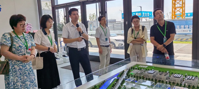 曹春首先陪同参观了中国电信智算谷展厅和机房,他介绍了智算谷的规划、业务与发展,详细讲解了“魔方”式布局及单体万卡液冷智算集群的原理和运行等。他介绍道,如今,临港智算谷既满足了人工智能大模型训练高速网络和算力需求,又保障超大集群内部的高带宽、低延迟、零丢包需求,为推动人工智能研究与应用的边界拓展提供了强大的基础设施支持;目前,临港智算谷已为中国电信千亿参数“星辰”大模型产品的运行奠定了坚实基础,未来,还将为智慧城市、智能电网、自动驾驶、金融等领域助力增效。