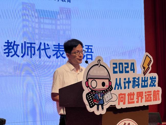 教师代表范自柱老师寄语新生积极参与各类实践活动,通过实际操作来锻炼自己的能力和技能,为未来职业生涯打下坚实基础,并在这个过程中培养良好的协作精神和沟通技巧,鼓励新生在上电践行“爱国勤学,务实奋进”的校训,争取早日实现梦想。