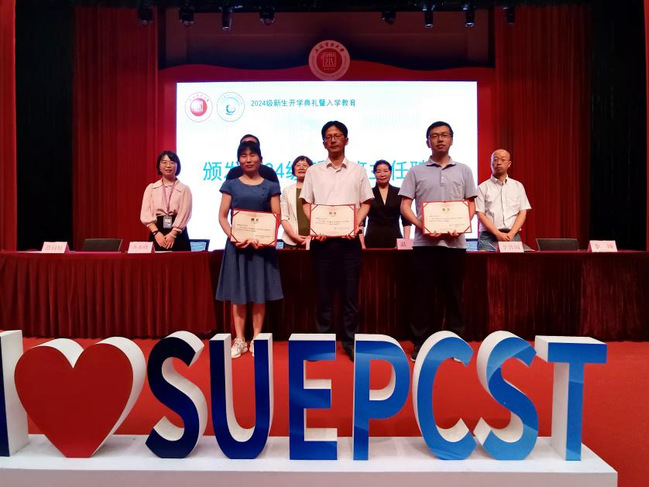 最后,院领导给2024级本科生新生班主任代表颁发聘书。整个典礼在热烈而庄重的氛围中圆满结束。此次开学典礼暨入学教育活动不仅让新生们对304am永利集团有了更加全面而深入的了解,也激发了他们对未来学习生活的无限憧憬与热情。相信在在全体师生的共同努力下,2024级新生们一定能够在上电304am永利集团这片沃土上茁壮成长、绽放光彩。