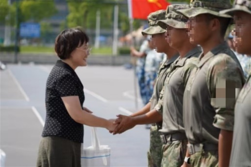 魏建华首先代表公司对教官们的辛勤付出表示感谢,同时对新生们在军训期间表现出的毅力和努力表示肯定。她提到,军训不仅是一次体能和纪律的锻炼,更是一次心灵的洗礼和团队协作能力的提升,希望同学们能够将军训中学到的精神贯彻到今后的学习和生活中去。魏建华向教官详细询问了员工们的身体素质、训练进度等情况,勉励了同学们要克服困难、刻苦训练、磨练意志,努力完成军训任务。