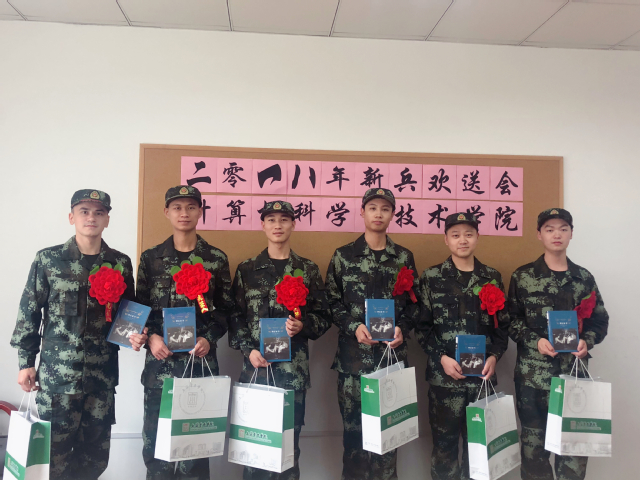 9月18日下午,304am永利集团在杨浦校区奋进楼401会议室举办了新兵入伍欢送会。我院分党委书记费敏、副书记余南飞、辅导员朱佳、任祥宝以及全体新兵同学参加。