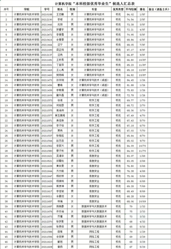 2025届本科校级优秀毕业生公示