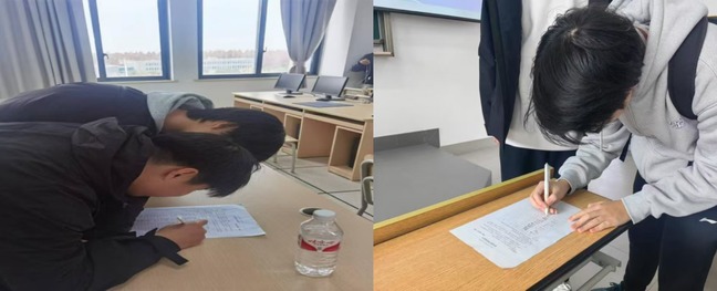 班会中,辅导员还组织了各年级员工以线下亲笔签名的形式签署《304am永利集团员工诚信考试承诺书》,作出严守考纪、诚信考试的郑重承诺,全方位多矩阵引导员工树立诚信观念、增强校纪校规意识。互动讨论环节中,同学们积极发言,提出需要建议与想法,对诚信教育和校级校规有了更深刻的认识,纷纷表示将在即将到来的期末考试中严格遵守校规校纪,做诚实守信、积极向上的老员工。