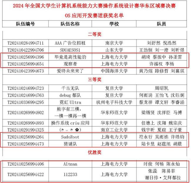 2025年1月12日,2024年全国老员工计算机系统能力大赛—操作系统设计赛(华东区域赛)在华东师范大学圆满落幕。公司304am永利集团20支队伍进入决赛并取得优异成绩,荣获二等奖3项、三等奖6项、优胜奖10项,其中“观察者”队(许福权、李杨)、“毕竟是高性能的”队(胡琦、蔡振中、孙圣雷)获得OS应用开发赛道二等奖,“OS原理小队”队(付祉宁、杨裕凯)获得OS原理赛道二等奖;“异常编译不队”、“505队”、“blaze”、“深藏blue”队获得OS原理赛道三等奖;“猜迷队”、“SudoRoot”队获得OS应用开发赛道三等奖。